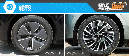 轮毂方面,入门级车型配备19英寸低风阻轮毂,匹配规格为255/55 R19的轮胎,并可以选装20英寸轮毂。中配和高配车型采用全新样式的20英寸多辐式轮毂,匹配规格为255/50 R20的轮胎。