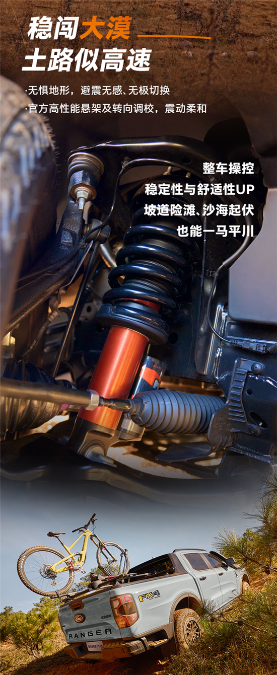 皮卡除了工具车,其实也是玩具车,本周福特游骑侠Ranger FX4沙狐特别版的上市就给玩具皮卡带来了一个全新选择。新车基于游骑侠Ranger打造,新增了一些越野专用配置,例如前绞盘、涉水喉、金属踏板、钢制前保险杠、货厢龙门架、AT越野胎和防脱圈等。底盘方面则加装了瓦特连杆+FOX定制氮气减振器,实现阻尼力无级、无感调节,自动匹配不同驾驶环境,滤震效果明显提升,能够轻松应对高速、颠簸、过弯、飞跳等路况。