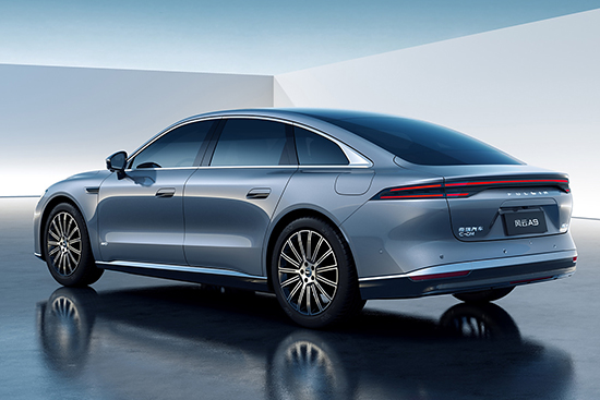 侧面采用笔直的腰线勾勒,并配备了半隐藏式门把手、双色多辐轮毂以及六活塞固定式卡钳。尾部造型相对宽大,贯穿式尾灯与车头形成呼应,下包围则采用隐藏式排气布局。