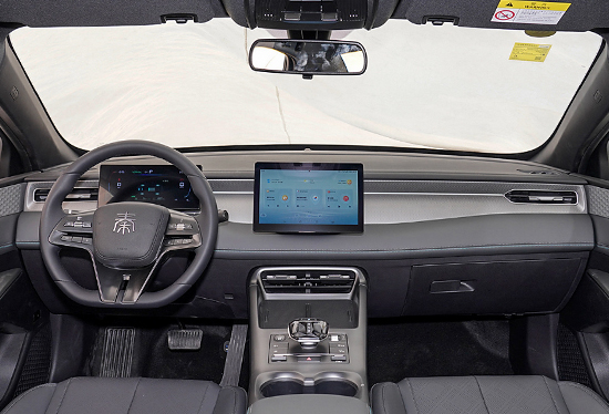 内饰依旧采用极简主义风格,由于到店的车型为低配版本,因此中控屏尺寸较小。方向盘样式与比亚迪秦L DM-i保持一致,换挡杆周围配备有物理按键,带有中文标识,日常操作简单方便。