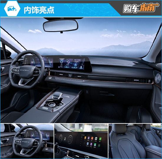 坐进车内,“酷感黑”主题内饰整体质感相当不错,另外在设计方面也充分迎合了时下主流的简约科技风。不过需要注意的是,根据官网提供的配置表来看,只有中配的舒适型和顶配的豪华型采用的是搪塑仪表板,而入门的标准型则并没有享受到此待遇。配置方面,新车全系标配20.5英寸星云环绕屏,由10.25英寸液晶仪表和10.25英寸中控屏组成,Lion 5.0 AI科技智慧座舱拥有丰富的娱乐生态,内置雄狮系统,支持车联网、OTA升级、HUAWEI HiCar以及CarPlay手机互联。前排标配一体式运动座椅,剪裁较为立体,预计能够提供不错的包裹感。