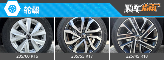 轮毂方面,听劝版配备16英寸铝合金轮毂,匹配205/60 R16规格轮胎;先到先得版和超有料版配备17英寸铝合金轮毂,匹配205/55 R17规格轮胎;同时,超有料版还可以选装18英寸轮毂和225/45 R18规格的轮胎。