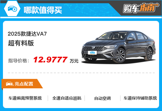 综合来看,如果您正在关注2025款捷达VA7,那么超有料版值得优先考虑。