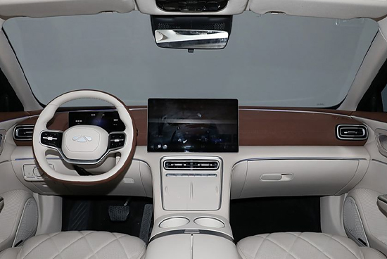 内饰采用全液晶仪表与悬浮式中控屏的组合,并在中控区域保留了部分常用功能的实体按键,兼顾科技感与实用性。细节部分,门板和座椅采用菱形格纹绗缝工艺,搭配全新样式的双辐平底方向盘,豪华氛围浓郁。