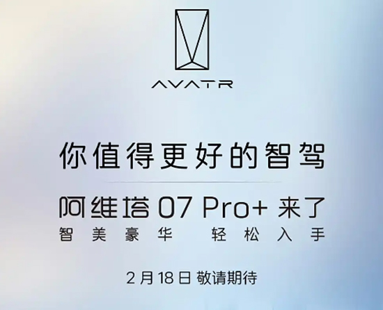 日前,车质网从相关渠道获悉,阿维塔07 Pro+将于2月18日正式上市,官方表示新车搭载全套华为乾崑智驾解决方案,能够完美解决长途疲劳、停车困难、城市拥堵等问题。虽然并未明确新车与现款Pro版车型的具体差异,但是配置方面预计会有所升级。
