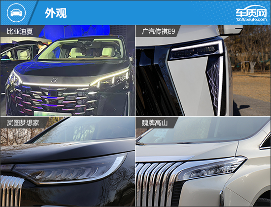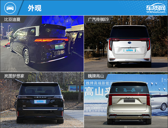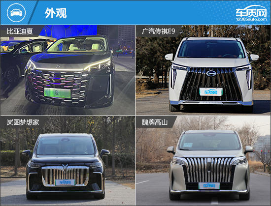 此次推荐的均是市面上比较热门的自主品牌车型,它们分别为比亚迪夏、广汽传祺E9(以下简称:传祺E9)、岚图梦想家(以下简称:梦想家)和魏牌高山。其中,比亚迪夏是近期刚上市的全新车型,传祺E9及梦想家均有着相对较好的市场关注度,魏牌高山则是该领域中的老牌战将。本文将尽可能选取四款车型中价格相近的车款进行对比,看看它们表现如何。(由于目前图片数量较少,因此部分车型的图片并不是相对应的具体款型)