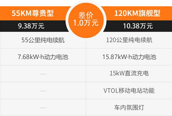 最后来说一下顶配的120KM旗舰型。从功能上讲,这个版本主要增加了动力电池的容量、直流快充和VTOL移动电站(对外放电)功能,更加适合那些方便每天充电,有私家充电桩的用户。毕竟更大的电池意味着每天可以只用电不烧油,用车成本还能再下降不少,体验超低成本且没里程焦虑的双倍快乐。