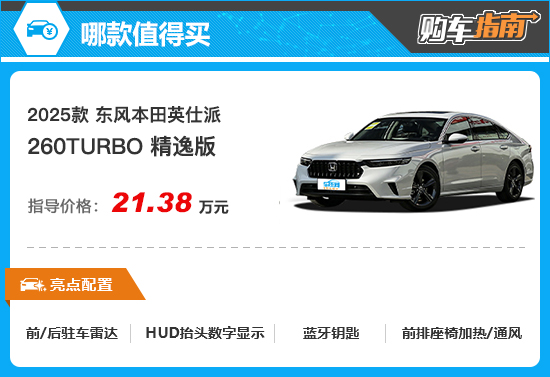 作为雅阁的姊妹车型,东风本田英仕派自从上市以来,凭借出众的颜值和亲民的价格,吸引了不少追求个性的年轻消费者关注。前段时间,东风本田为我们带来了2025款东风本田英仕派。作为年度改款车型,新车主要针对配置进行升级。那么,其所推出的3款车型中哪一款最值得选择?本期《购车指南》为您解答。