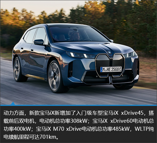 近日,宝马正式发布了新款宝马iX的官方图片。作为中期改款车型,新车不仅在外观设计上进行了优化,更在性能上实现了显著提升。值得一提的是,新车的WLTP纯电续航里程达到了701km,进一步巩固了其在电动豪华SUV市场中的竞争力。接下来,我们将通过新车图解带您领略其独特魅力。
