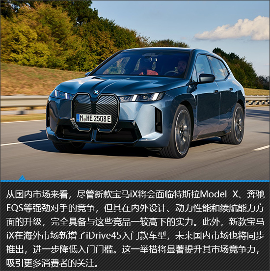 新款宝马iX凭借其前瞻的设计、卓越的性能以及出色的纯电续航里程表现,无疑为豪华纯电SUV市场树立了新的标杆。宝马iX不仅展现了宝马品牌在电动化转型上的坚定决心,更以其出色的产品实力,赢得了市场的广泛赞誉。期待新款宝马iX在未来能够引领更多消费者走向绿色出行的新时代。