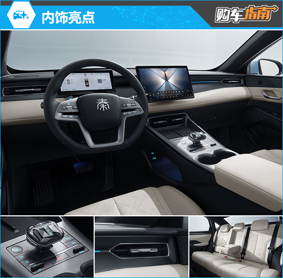 内饰造型简约规整,中控台采用对称式设计,用料扎实做工细腻。新车换装了全新设计的方向盘以及BYD Heart电子换挡杆,功能区布局清晰合理,无论视觉效果还是操作便利性均表现出色。全面进阶的智能座舱高阶版-DiLink 100颇具看点,搭载12.8英寸中控屏,系统新增双桌面随心切换、3D控车、车载ETC以及哨兵模式等功能。