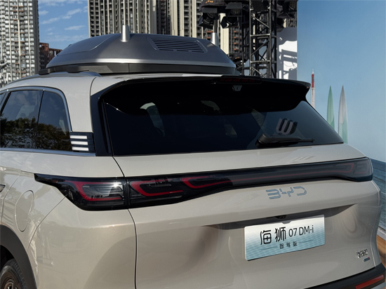 值得一提的是,海狮07 DM-i智驾版在车尾上方配备了一个深色突起的无人机仓,其搭载的比亚迪灵鸢智能车载无人机系统由比亚迪与大疆联合研发。该系统支持无人机动态起降、智能跟飞及一键返舱等功能,用户可通过车机内置的灵鸢APP进行操控,一键生成影像作品。比亚迪表示,未来王朝、海洋、方程豹、腾势及仰望旗下的SUV车型均有望搭载该系统。