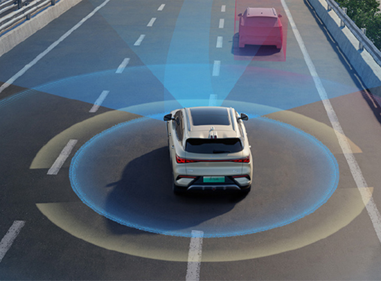 在智驾方面,新车全系标配天神之眼高阶智能驾驶辅助系统,应用比亚迪首创的三目前视摄像头,可实现高快领航、拨杆变道、车道领航、代客泊车、遥控泊车、自动泊车、自动紧急制动、前向碰撞提醒、盲区监测等功能。