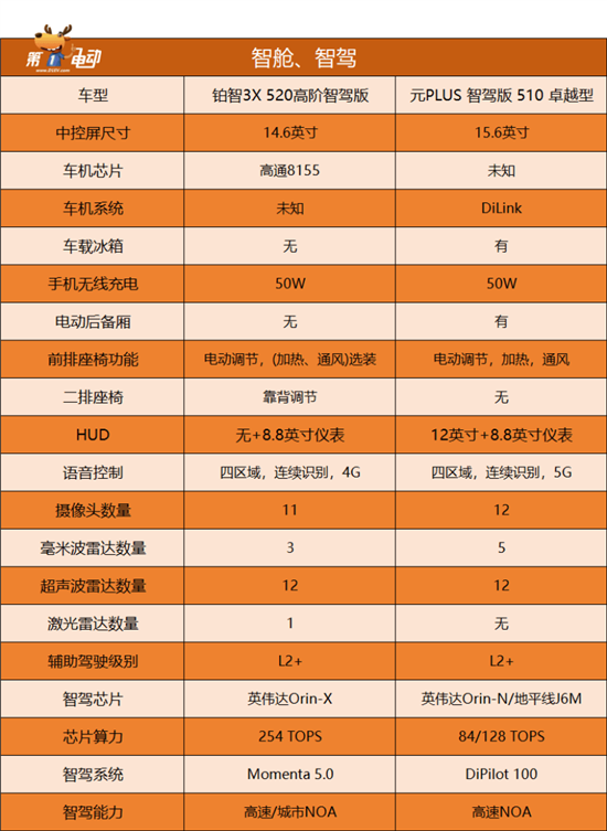 两款车型的定位、续航、价格都高度重叠,所以我们选取了铂智3X 520高阶智驾版和元PLUS 智驾版 510 卓越型来做个对比,因为两者的价格相当而且带高阶智驾。
