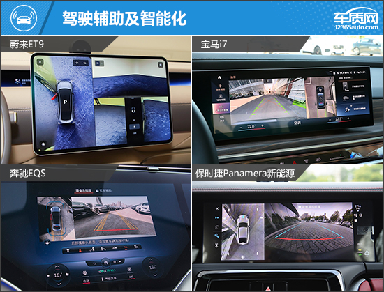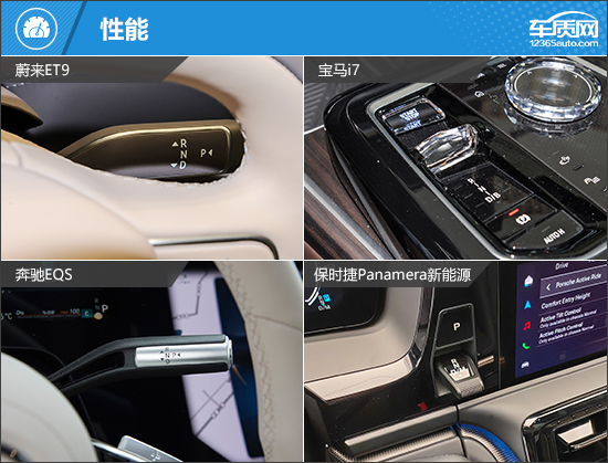 作为各自品牌的旗舰车型,在豪华感和档次感氛围的营造上无须担心,精致的装饰件和大量皮质包裹,都对得起车型售价,给予满满的情绪价值。比较有特点的是,蔚来ET9配备小尺寸液晶仪表,宝马i7采用双联屏设计,奔驰EQS则标配了副驾娱乐屏,三款车型均在屏幕设计上有各自的巧思。保时捷Panamera新能源提供了大量物理按键,实用性表现出色。
