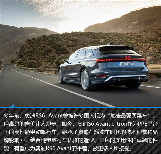 相信在不少车迷心中,旅行车都有着独特的魅力。而奥迪S6 Avant e-tron正是那种一眼难忘的车型。尽管它少了些传统燃油性能车独有的战斗气质,但前所未有的优雅姿态足以令旅行车爱好者心动不已。