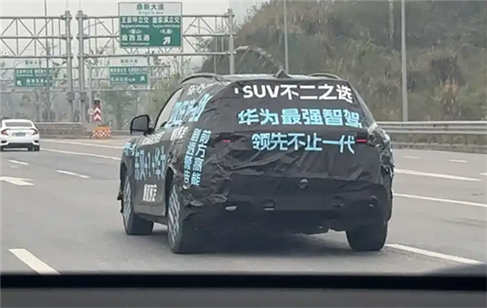 从谍照来看,车辆覆盖伪装车衣,上面标有“东风+?+华为”及“华为最强智驾”等字样。