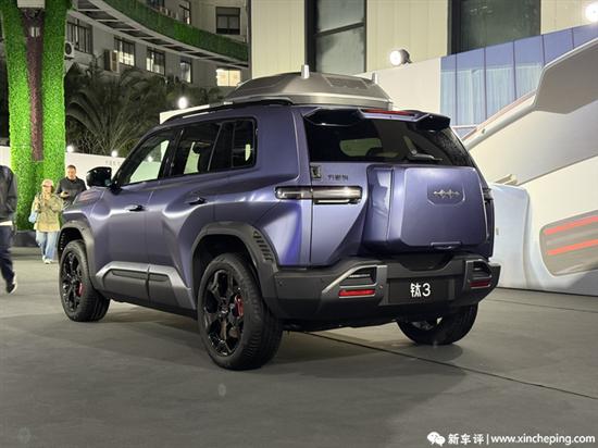 外观设计方面,方程豹钛3采用"星战前脸"设计语言,配备封闭式熏黑中网和梯形LED大灯组,内部扁平光源增强了科技感。前保险杠采用越野风格设计,多处斜面处理提供更大的接近角,两侧"獠牙"造型增添了辨识度。车身侧面造型小巧灵动,熏黑五辐轮圈搭配红色刹车卡钳展现出运动气息。车尾设计同样具有个性,搭载横向布局的双线切割尾灯,后包围采用与前脸呼应的三角形设计,辅以两段式扰流板。