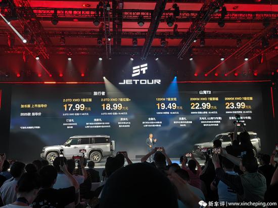 4月18日,捷途汽车正式推出旅行者加长版和山海T2加长版两款新车,旅行者加长版共推出2款车型,售价区间为17.99-18.99万元;山海T2加长版则提供3款车型,售价19.49-23.99万元。这两款新车在原有车型基础上增加了249mm车身长度,采用7座布局,全系标配20英寸哑光黑轮圈,进一步拓宽了用车场景。