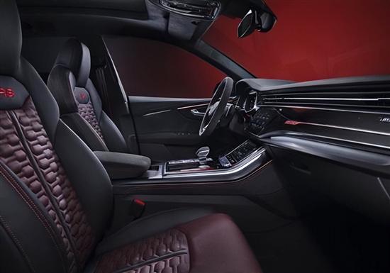 外观方面,新款RS Q8 Performance在外观设计上延续了奥迪RS家族的激进风格,同时标配熏黑套件。新车在进气格栅、车标、外后视镜、窗框等均采用黑色高光处理,搭配深灰色23英寸轮毂,营造出强烈的视觉冲击力。前唇、侧裙、后扩散器等部位大量使用碳纤维材质,既减轻了车重,又提升了空气动力学性能。