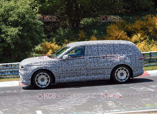车顶线条十分流畅,颇具旅行车的风格,其还采用隐藏式门把手和刀锋造型的封闭式轮毂设计,能够降低风阻系数。尾部依旧会保留贯穿式双条幅灯带设计,后包围设计与概念车有明显不同。结合此前谍照分析,后排座椅将十分宽大厚重,采用几何造型分割,整体风格与美式SUV相似。座椅中间配备宽厚的中央扶手,并集成杯架、无线充电板和功能控制屏幕。