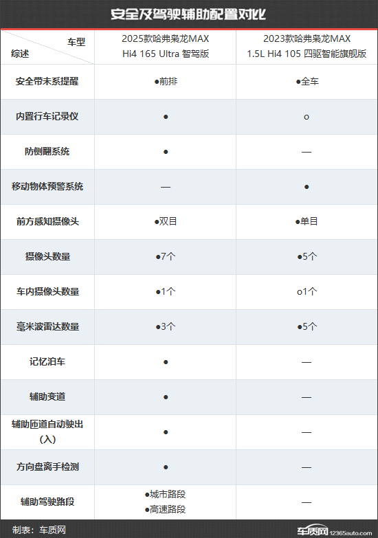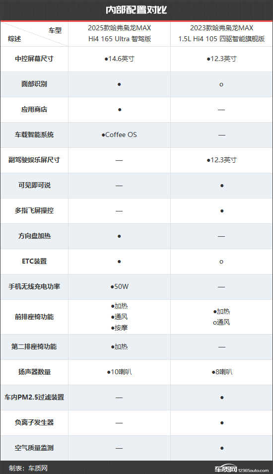 对比来看,除了更加时尚动感的外观及内饰设计,新款车型在配置方面也有一定进步,部分功能的缺失基本上都无伤大雅,谈不上是“硬伤”。此外,新款车型的售价区间还有所下探,也算是对行业“内卷”的一个有力回应。综合来看,2025款哈弗枭龙MAX确实算是一次诚意满满的换代,性价比相当高。