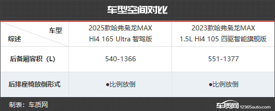 2025款哈弗枭龙MAX共推出5款配置车型,售价区间为13.18-16.98万元。2023款现已无在售车型,当时仅推出3款配置,数量方面不及2025款车型丰富。虽然在价格方面存在一定差异,但是本次选择的对比车型依然均为顶配版本,以便能够更加直观地看出新老款车型在配置层面的具体差异。