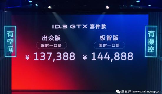 6月14日,大众汽车官方宣布,备受关注的ID.3 GTX套件款正式上市销售。新车共推出两款车型,以限时一口价的方式进入市场,售价分别为13.7388万元和14.4888万元。
