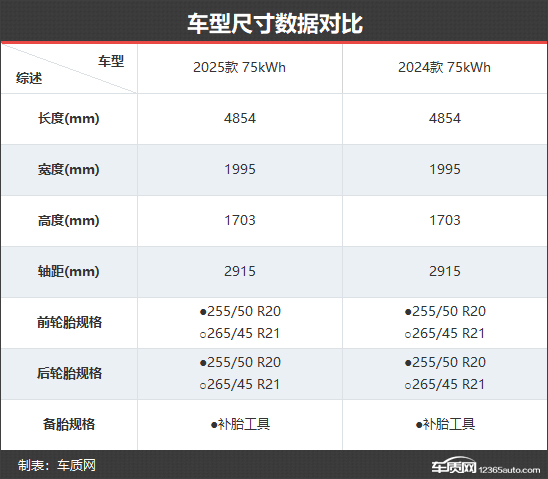 车型尺寸方面,新款车型与老款车型完全一致,并且标配的轮胎规格也同为255/50 R20。有区别的是,新款车型换装了全新的轮毂样式,再搭配红色刹车卡钳,整体视觉效果更为运动。