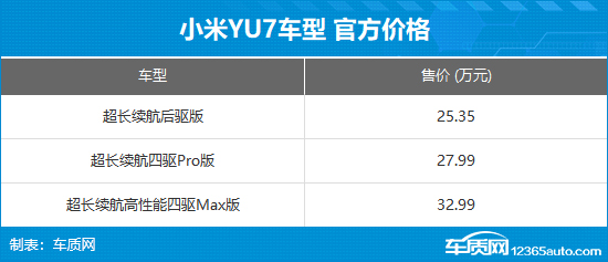 6月26日,小米YU7正式上市,共推出3款配置车型,官方指导价格区间25.35-32.99万元。新车基于小米摩德纳平台技术架构打造,延续了小米品牌的家族化设计语言,全系采用800伏碳化硅高压平台。