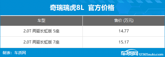 6月28日,奇瑞瑞虎8L长虹版上市,新车推出2款车型,售价区间14.77-15.17万元。新车主要会对配置方面进行调整,其他方面没有大的变化。