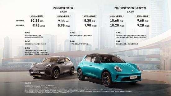 6月27日,2025款欧拉好猫正式上市,共推出3款车型,售价区间8.38-10.38万元,限时换新价7.98-9.98万元。新车主要针对外观细节和内饰设计进行升级,其中经典版仍旧采用现款的造型,动力方面提供401km和430km两种续航版本。