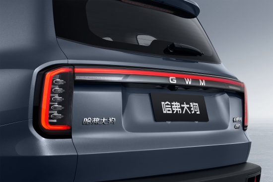新车侧面线和尾部并没有发生明显变化,趋于平直的车顶线条配合18英寸轮毂以及传统造型的门把手,视觉效果依旧十分硬朗。车尾保留了贯穿式灯带设计,但尾标由“HAVAL”更换为“GWM”。