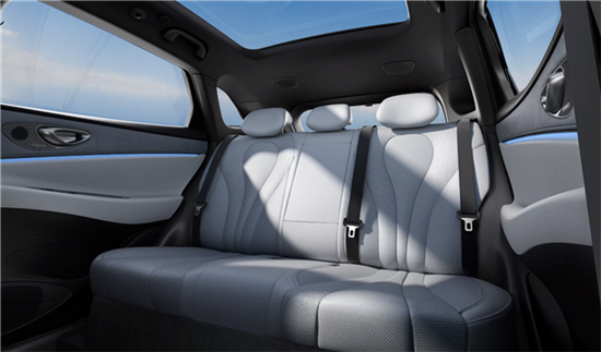 车顶还配有可100%阻挡阳光的电动遮阳板,后排为大三座设计,坐垫厚实,目测乘坐舒适度会有保障。