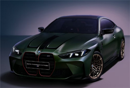 外观方面,该限量版车型基于新款宝马 M4 打造,采用了个性化定制的 “磨砂深绿” 特别涂装,M 进气格栅搭配专属红色装饰边框,营造出 M4 CS 的张扬气质。