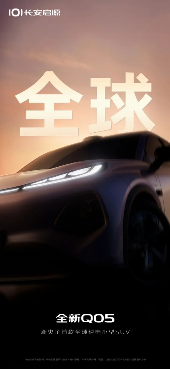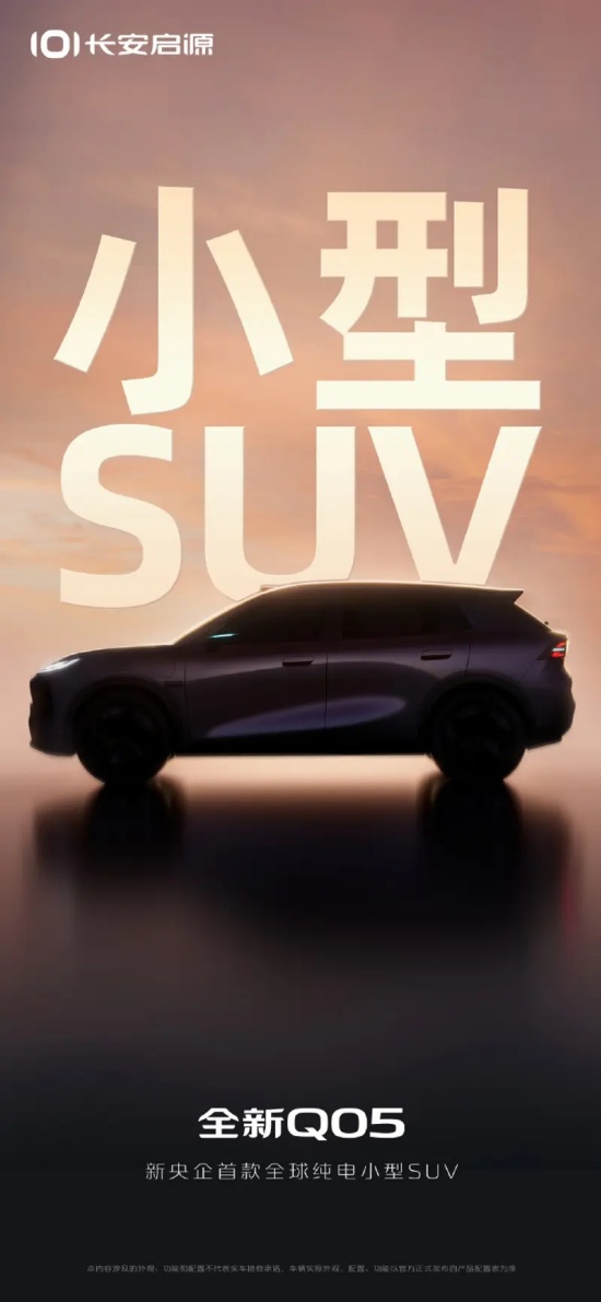 今日,长安启源官方发布了长安启源全新Q05的预告图。新车将基于全新的纯电平台打造,定位新央企首款全球小型纯电SUV。价格上,预估新车将承接长安启源Q07的市场空白,精准定位11–13万市场空间。