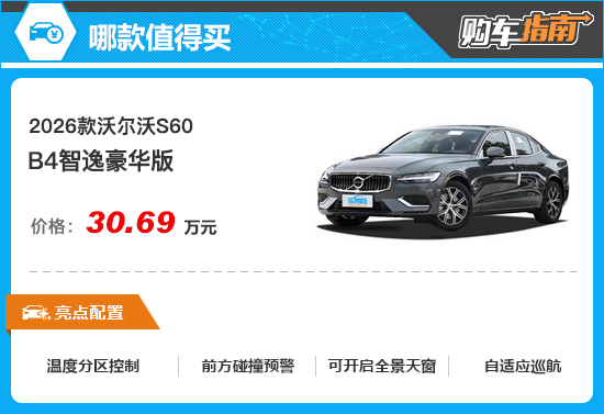 综合来看,如果您正在关注2026款沃尔沃S60,那么B4智逸豪华版值得您优先考虑。