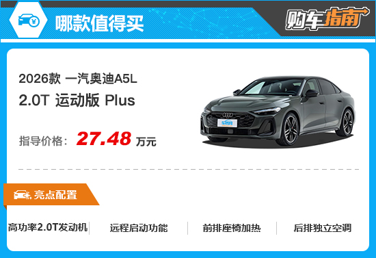 综合来看,2026款一汽奥迪A5L 2.0T 运动版 Plus更值得推荐,购车时可优先考虑。