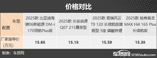 本次推荐的四款车型分别是比亚迪海狮06 DM-i、长安启源Q07、奇瑞风云T9以及哈弗枭龙MAX,售价均在15万元左右。其中,比亚迪海狮06 DM-i作为近期上市的新面孔,关注度颇高;另外三款也在今年上半年相继推出,热度同样不低。