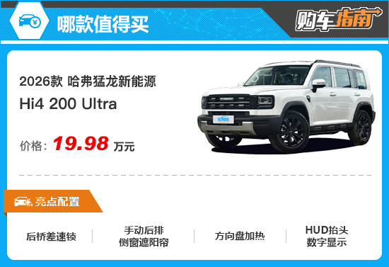 因此,综上所述,Hi4 200 Ultra在2026款哈弗猛龙新能源全系车型中拥有着更高的性价比,消费者在购车时可以优先考虑。