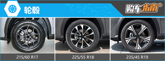 根据现有消息来看,新车全系提供3款轮毂样式供消费者选择,造型都比较时尚。轮胎规格方面,入门车型配备215/60 R17规格轮胎;顶配车型配备235/45 R19规格轮胎;其余车型均配备225/55 R18规格轮胎。