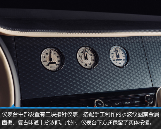 整车内饰充斥着浓郁的豪华味道,采用定制真皮包裹、手工金属材质装饰。相比于一众装配大尺寸中控屏的车型而言,新车保留了大量实体按键,不仅视觉上十分精致,而且方便驾驶员盲操作。此外,车内主/副驾座椅采用两种不同的配色,配合定制刺绣图案,凸显出时尚前卫的特殊风格。