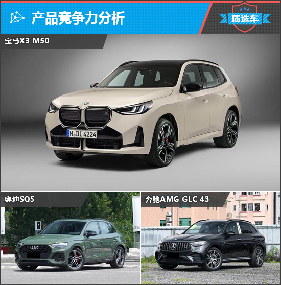 说到宝马,就不得不提起它的老对手,奥迪和奔驰。宝马X3 M50自然将面对来自奥迪SQ5和奔驰AMG GLC 43两款车的挑战。