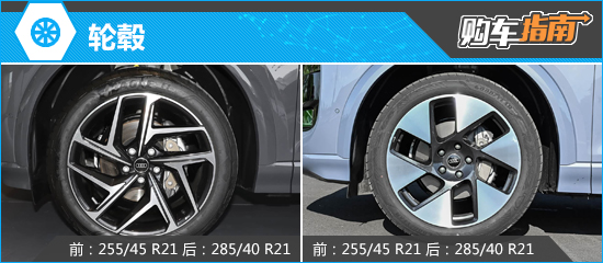 一汽奥迪Q6L e-tron入门车型配备20英寸轮毂,匹配规格为前255/50 R20,后285/45 R20的轮胎,并且可以选装与顶配车型相同的21英寸轮毂,匹配规格为前255/45 R21,后285/40 R21的轮胎。