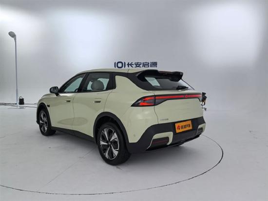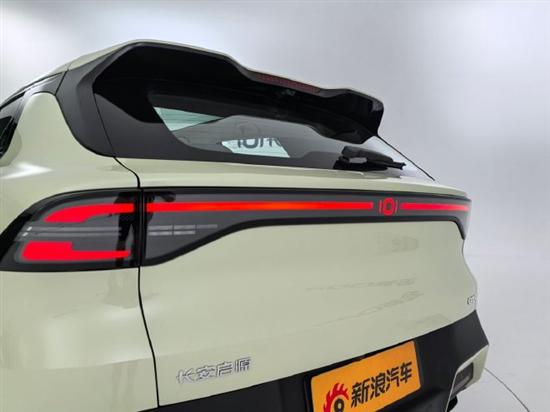 车尾部分的设计也是有了很多变化,整个贯穿式的尾灯组借鉴了家族化的设计语言,尤其是在两边的位置,使用了C字型的样式,点亮以后得辨识度还是很高的,与此同时,长安启源的LOGO也是使用了可发光的元素,并融入到了整个贯穿式尾灯组中。