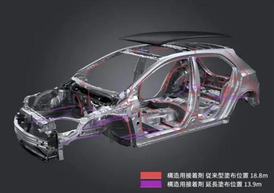 据官方介绍,为了提升车身刚性,新款GR卡罗拉在白车身上额外使用了13.9m的结构胶,总长度达到32.7m。新增的结构胶主要涂抹在车身前框架、底盘、后框架等处,在不增加太多重量的情况下增强车身的整体性。同时,为了在赛道上拥有更好的稳定性并延缓性能因发动机工作温度过高而衰退,工程师在前机舱内为发动机进气谐振箱增加了新通风管道,以保持发动机在高转速、高负荷工况下有充足的冷空气进入,使发动机能够维持相对稳定的动力输出。新款GR卡罗拉还针对JBL高级音频系统进行改进,增加了一个低音炮,并将扬声器数量增加至9个,并更新了主动声音控制(ASC)系统。