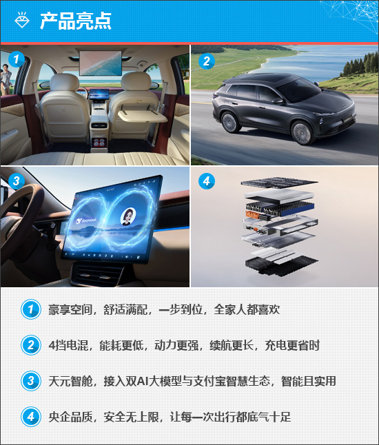 安全方面,东风风神L8搭载行业首创的4重电芯强化动力电池,符合最新国标要求,具备耐穿刺、耐挤压、耐浸水及跌落能力。全车配备8气囊及气帘,可为每一位乘员提供安全保障。此外,新车拥有28项辅助驾驶功能、540°全景影像及高清流媒体后视镜,进一步辅助驾驶员提升行驶安全性。
