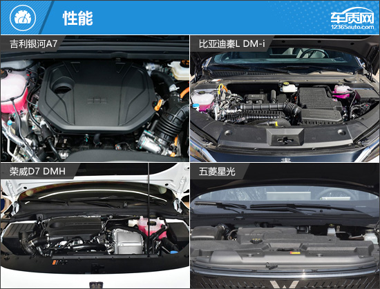 车身尺寸方面,吉利银河A7在车长、车宽和轴距上领先,后排空间具有优势,满载三人时舒适度更高;五菱星光则以较高的车身带来更好的头部空间。相比之下,荣威D7 DMH整体参数较为均衡,而比亚迪秦L DM-i则在三项关键数据上垫底,车内空间表现相对逊色。