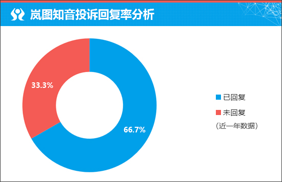 在衡量新车售后服务口碑方面,我们将通过企业对于车主投诉的回复情况进行分析,相对客观地对于新车未来的售后服务口碑有所预判。据车质网数据显示,近一年岚图知音车型的投诉回复率为66.7%,可见厂家对于车主的诉求重视程度亟待提升。