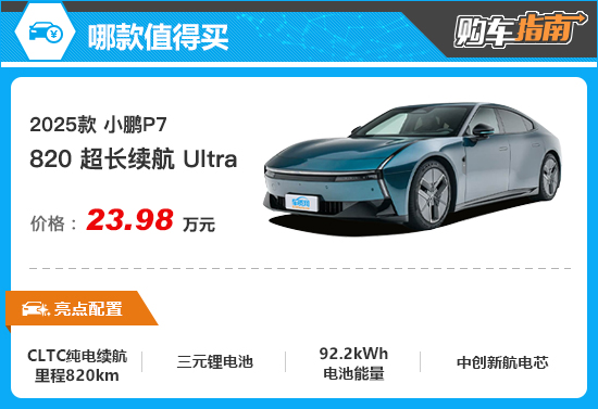 因此,对于全新小鹏P7的购买建议,重点推荐820超长续航Ultra,消费者在购买时可优先考虑。